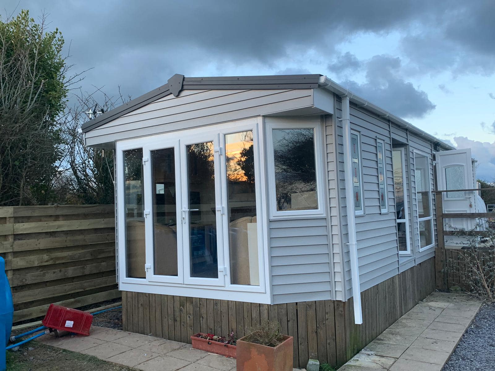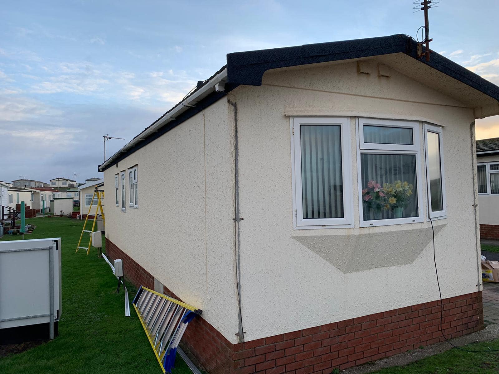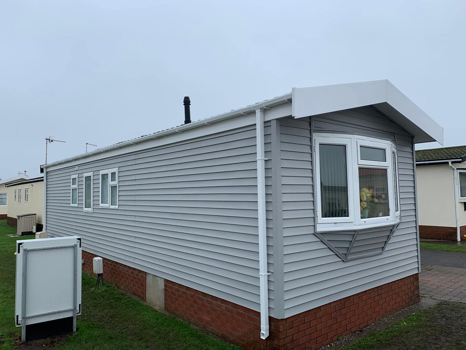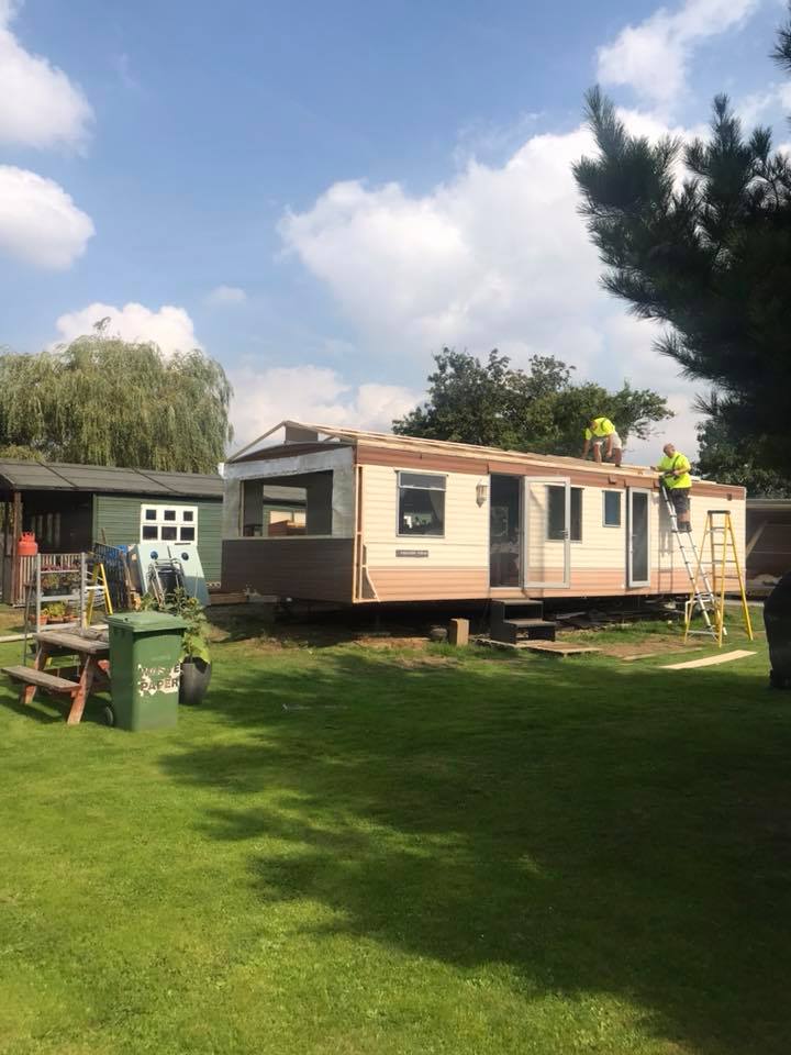 The vinyl over clad of static caravans is a process of over-laying foil bubble insulation that is also used as its membrane, moisture if there will run down the back of the cladding or via the cladding’s drainage system and out. By leaving the original construction of the caravan the foil bubble & vinyl cladding becomes an extra insulation, it also looks aesthetically better & as the planks are interlocked resolves the issue of leaking panel joins on the aluminium type.